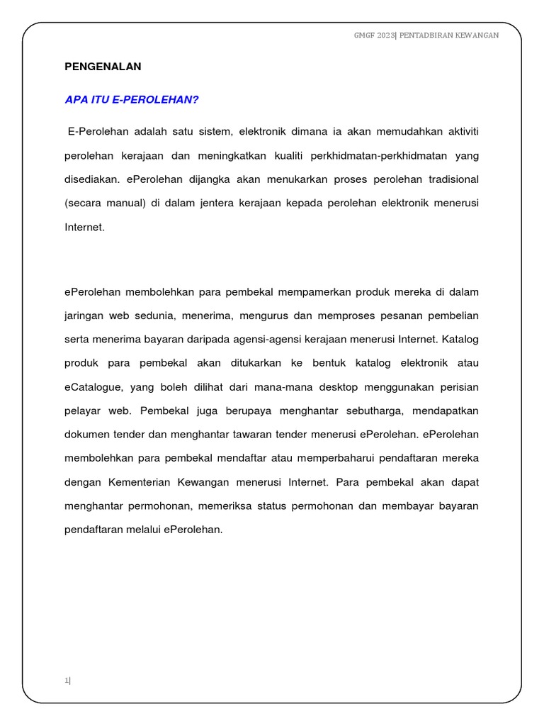 Dasar semasa yang dinamik menyukarkan pelaksanaan oleh agensi. Perancangan perolehan apa yang perlu dibeli kuantiti bila diperlukan anggaran harga pasaran baki dalam stok pembekal di pasaran pilihan di pasaran kaedah perolehan hendaklah berdasarkan nilai keseluruhan kontrak dan atau nilai perolehan tahunan. Tapi kali ini aku ingin berkongsikan sesuatu tentang e bidding e perolehan ini. Oleh itu perolehan kerajaan ialah proses yang dilakukan oleh agensi bagi mendapatkan sesuatu keperluannya daripada pihak ketiga dengan menggunakan wang yang telah diperuntukkan mengikut undang undang peraturan tatacara dan garis panduan yang ditetapkan serta mengambil kira prinsip dan dasar semasa kerajaan yang berkaitan.