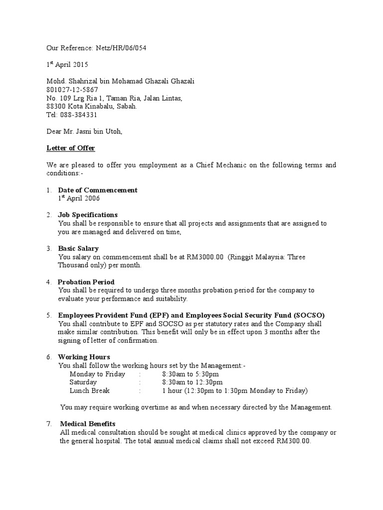 If you are pleased with the offer you are required to sign the letter and return one. Offer letter ni bukti staf anda bekerja dengan anda mengikut polisi tertentu. Bila ada offer letter sekurang kurangnya staf tahu mereka dah ada contract yang mereka terikat dan tak boleh bertindak sesuka hati mereka. Contoh cover letter atau bahasa melayu nya surat permohonan pekerjaan.