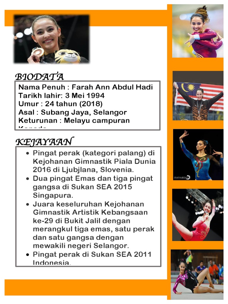 Biodata farah ann abdul hadi gimnastik. Bukan sahaja dikurnia rupa paras yang cantik malahan aksi lincahnya di gelanggang gimnastik sentiasa menjadi tumpuan netizen terutamanya bagi pengemar sukan tanah air. Biodata farah ann abdul hadi ratu gimnastik malaysia papar berkaitan pada 24 8 2017 jumlah. 2756 hits biodata farah ann abdul hadi ratu gimnastik malaysia siapa tak kenal wajah cantik bernama farah ann farah ann abdul hadi atau lebih dikenali sebagai farah ann adalah ratu gimnastik malaysia dimana beliau berjaya melakar beberapa kejayaan da. Farah was born in subang jaya selangor to abdul hadi ahmad and canadian born kimberly ann gagnon on 3 may 1994.
