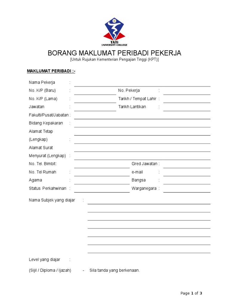 Anggota hendaklah mengisi maklumat ini dengan tepat dan lengkap. Borang maklumat peribadi guru bil butir peribadi. Borang maklumat peribadi kakitangan ukm per sila kemukakan 1. Maklumat data peribadi arahan.