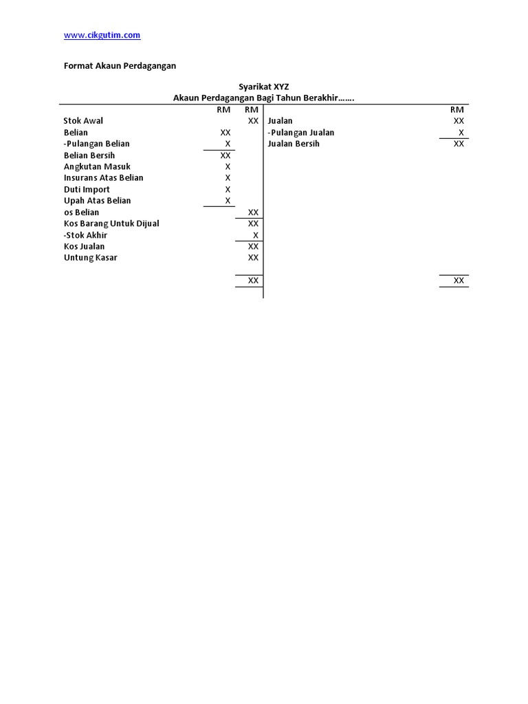 Contoh Akaun Perdagangan Untung Rugi