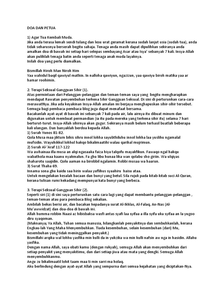 Dibawah ini adalah doa untuk merawat lemah tenaga batin dan mati pucuk dengan iktiar penyembuhan itu semuanya datang dari allah s w t. Kepada isteri isteri yang suami mereka agak lemah tenaga batin itu elok diberitahu tentang doa ini untuk kebaikan bersama.