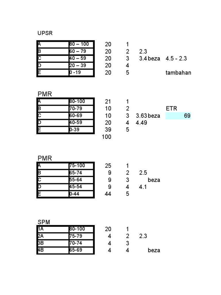 Since ur malay u just have to compare urself with all malay in ur class. Juga dikongsikan gred pemarkahan lama dengan yang baru untuk sekolah rendah menengah rendah dan menengah atas sebagai rujukan dan perbandingan. Ianya seperti dimaklumkan melalui sistem analisis peperiksaan sekolah pencapaian para pelajar akan ditentukan oleh julat gred markah peperiksaan upsr pt3 spm stam stpm baru yang dikongsikan di bawah ini. Julat markah dan gred untuk darjah 6 kbsr julat dan gred yang lama masih digunakan 80 100 a 60 79 b 40 59 c 20 39 d 01 19 e 00 th.