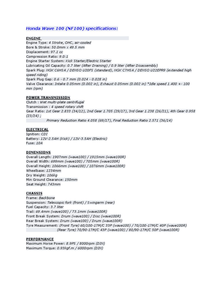 Honda ex5 dream 100 specification. The new moped from honda comes in a total of 4 variants. If we talk about honda ex5 engine specs then the petrol engine displacement is 109 cc. The ex5 is powered by a air cooled pgm fi 109 cc 1 cylinder engine that gives 8 54hp of power at 7500 rpm and 8 62 nm torque at 6000 rpm. Horizontal 49 124 cc 3 0 7 6 cu in 4 stroke air cooled single.