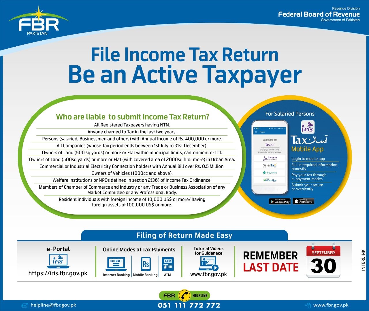 How to submit income tax return fbr. If you can feel any problem then contact me and i will make you filer in rs. 0308 4121499 for help and further details. To facilitate taxpayers fbr has introduced a simplified wizard based income tax return filing mechanism as a new feature of tax asaan mobile application. After registration you can log into iris and file your income tax return.