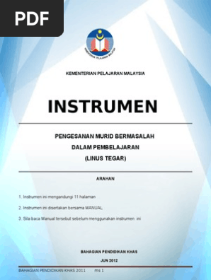 Instrumen pengesanan murid bermasalah dalam pembelajaran. Sila baca manual tersebut sebelum menggunakan instrumen ini. Instrumen ini mengandungi 11 halaman. Pengesanan murid bermasalah. Instrumen pengesanan murid bermasalah dalam pembelajaran ipmbdp dan instrumen senarai semak disleksia isd a instrumen pengesanan murid bermasalah dalam pembelajaran boleh dimuat turun dari sini.