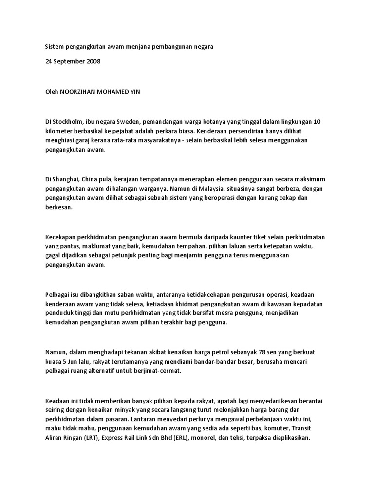 Isu pengangkutan awam di malaysia. Masalah sistem pengangkutan di malaysia sistem pengangkutan terbaik merupakan idaman semua rakyat malaysia kerana ianya adalah pilihan orang ramai untuk bergerak dari satu destinasi ke satu destinasi yang lain. Meskipun istilah istilah tersebut secara amnya dianggap sebagai perkhidmatan rel dan bas definisi yang lebih luas boleh merangkumi perkhidmatan penerbangan berjadual feri teksi dan sebagainya. Sistem pengangkutan merupakan nadi kepada pembangunan sesebuah negara. Berikut dikongsikan diantara masalah sistem pengangkutan di malaysia pengangkutan merupakan satu keperluan asas dalam kehidupan samada persendirian atau awam.