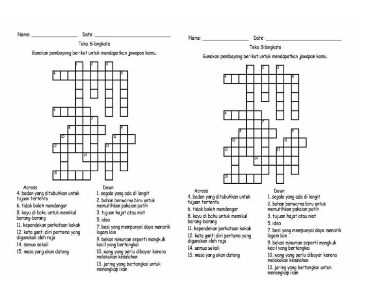 Tidak kira apa sebab apa awak perlukan contoh teka silang kata dan jawapan bahasa melayu ini pihak admin sedia membantu bahan tersebut. Adakah anda sedang mencari pelbagai teka silang kata berserta jawapan yang sangat terhebat untuk para guru download. Untuk peringatan bahan di atas iaitu contoh teka silang kata beserta jawapan yang sangat hebat untuk ibubapa lihat di tulis oleh admin pada 2019 02 08 01 14 17. Tidak kira apa kenapa anda semua cari teka silang kata bahasa melayu dan jawapan ini penulis bersedia membantu maklumat tersebut.