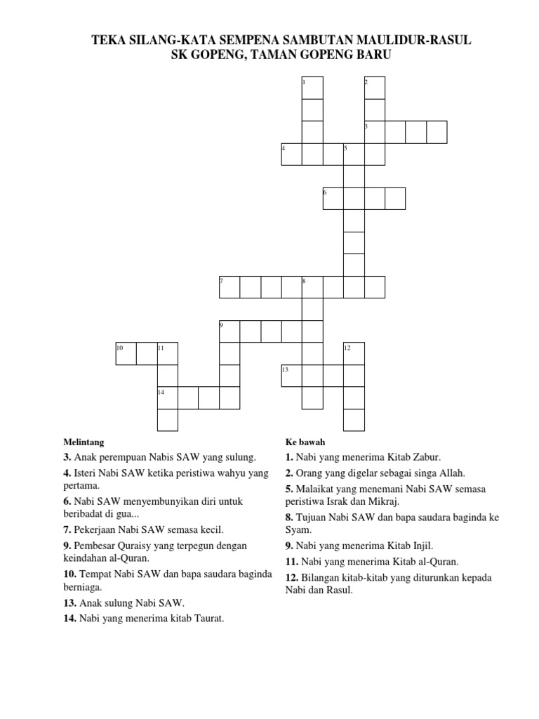 Adakah kamu semua sedang mencari pelbagai teka silang kata maulidur rasul yang sangat terbaik untuk guru guru perolehi. 20 feb 2012 bengkel upsr anjuran unit peningkatan upsr skmu 17 feb 2012 jumaat sambutan maulidur rasul peringkat sekolah 7 00 am astaka bestari skmu 01 feb 2012 rabu lawatan sektor jaminan kualiti jab pelajaran sabah ke sk muhibbah sandakan 16 20 2012 7 30 bersempena sambutan maulidur rasul yang diadakan saban tahun menuntut kita sama sama menghayati. Untuk nota bahan di atas iaitu pelbagai teka silang kata maulidur rasul yang sangat terhebat untuk murid lihat di tulis oleh admin pada 2019 01 12 14 00 17. Contoh soalan kualitatif untuk kajian impak contoh soalan interview contoh soalan iq contoh soalan jpa contoh soalan n29.