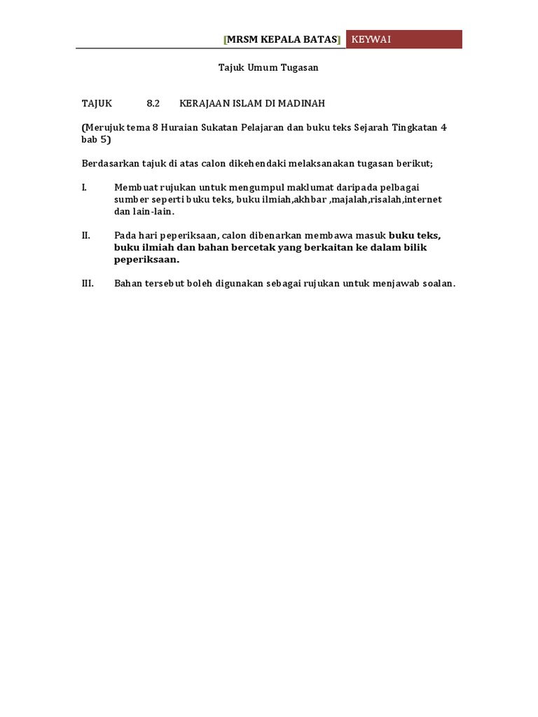 Dakwah islamaiah dapat dilakukan dengan aman. Sejarah p3 kbkk a dilah hanum. Contoh soalan dan jawapan kertas 3 sejarah spm 2014 tuisyen geliga. Kerajaan islam di madinah merupakan model 模范 kerajaan islam yang unggul 杰出 boleh dijadikan paduan kepada pembentukan negara islam yang lain.