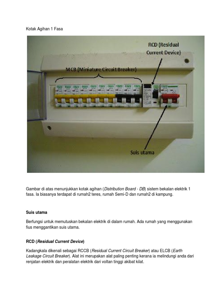 Gambar di atas menunjukkan kotak agihan distribution board db sistem bekalan elektrik 1 fasa. Pengudaraan bilik suis baik 4. Berfungsi untuk memutuskan bekalan elektrik di dalam rumah. Tidak terhalang atau terlindung memudahkan kerja penyelenggaraan 3.