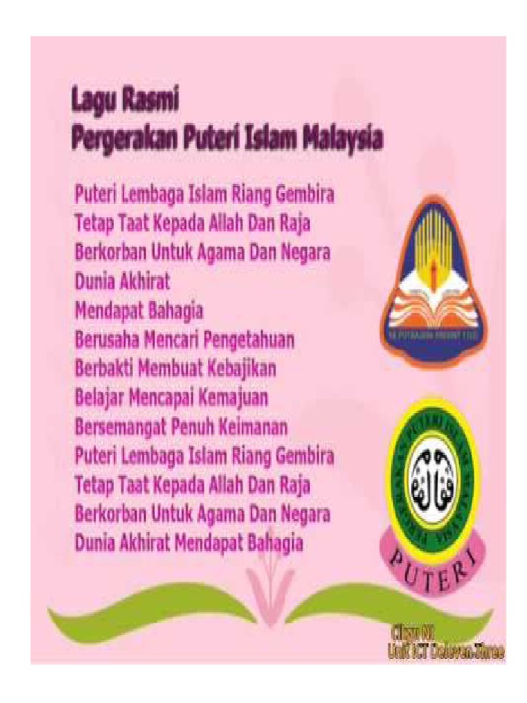 Lagu pergerakan puteri islam malaysia. Objektif pergerakan puteri islam malaysia di peringkat institusi pengajian tinggi bertujuan disamping memperkukuhkan segala apa yang termaktub di dalam 4 1 di atas adalah juga untuk 2 1 melahirkan pemimpin yang cekap berketrampilan berwibawa berdedikasi dan mempunyai wawasan bagi mewujudkan masyarakat remaja yang mampu. Di tengah logo tersebut terdapat satu bulatan putih dan di dalamnya ditulis dengan huruf jawi permulaan daripada perkataan pergerakan puteri islam. Lagu politeknik malaysia 2018 official duration. Walaubagaimanapun pergerakan puteri islam malaysia menyedari bahawa terdapatnya perbezaan umur dan perbezaan keperluan berdasarkan perbezaan kemampuan diantara ahli ahli dari kalangan para pelajar sekolah menengah dan rendah dengan institusi pengajian tinggi maka pergerakan puteri islam malaysia menggariskan objektif objektif yang sesuai dengan keprihatinan diri masing masing seperti berikut.