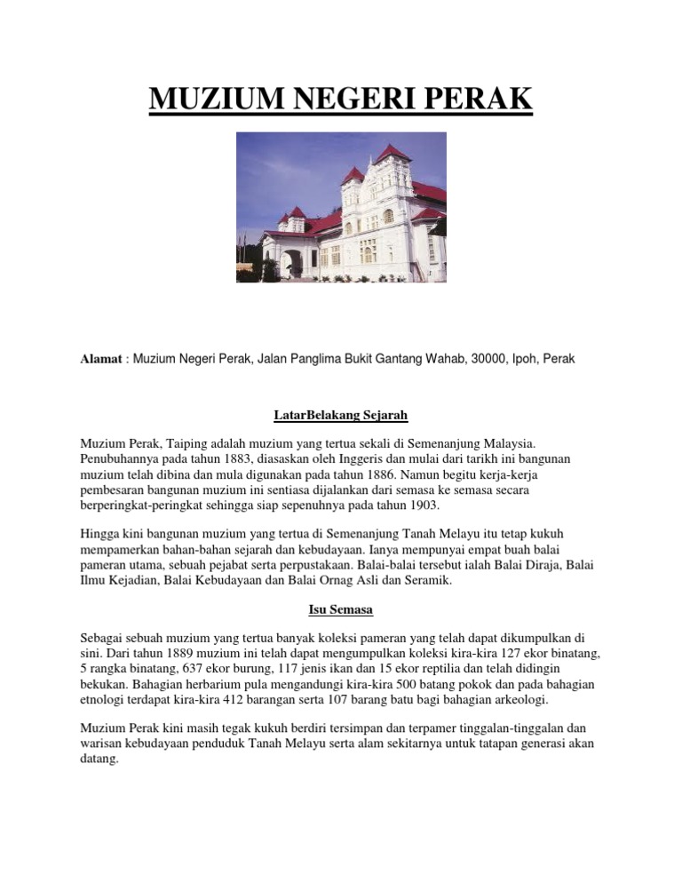 Justeru dari pengenalan nama negeri ini sendiri telah membayangkan tentang khazanah yang terkandung di buminya. Pada mulanya encik h b college mengetuainya dengan memegang jawatan sebagai nazir sekolah sekolah. Dia adalah sultan aceh keturunan perak awalnya dia adalah salah seorang pangeran kesultanan perak yang ditawan aceh ketika sultan ali riayat syah i dari dinasti meukuta alam mengadakan ekspedisi militer ke perak.
