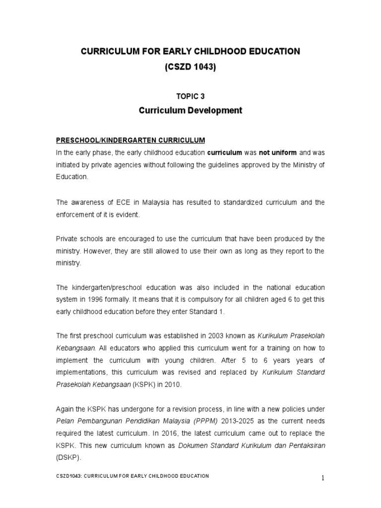 National preschool standard curriculum malaysia 2017. The npcs is mandatory for all agencies which provide preschool education in the country. The preschool curriculum committee is an important professional committee to implement the achievement of curriculum goals in schools in line with the philosophy and goals of the nation s education that produce balanced human beings and the requirements of the national curriculum cannot be fully and thoroughly implemented as there are some constraints that are still a barrier main to this. The new preschool curriculum focuses on standard content and standard learning. This was extended to the entire nation in 1993 and currently there are about 5905 of such preschools.