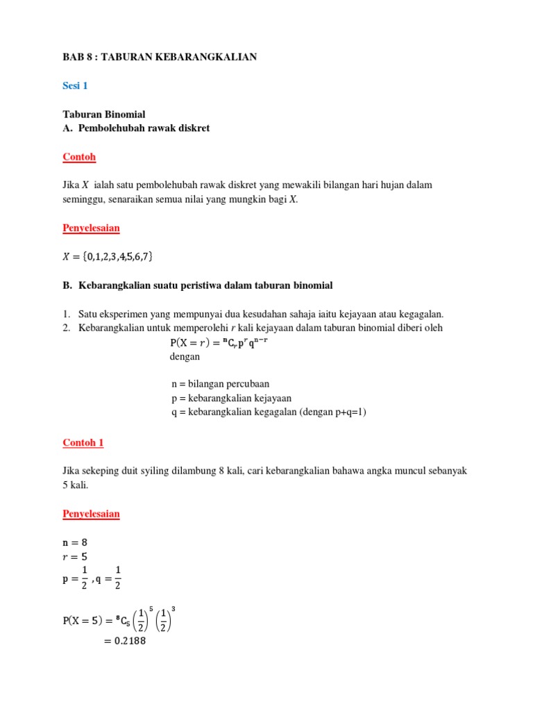 Nota matematik tambahan tingkatan 5 taburan kebarangkalian. Hitung a kebarangkalian bahawa sebiji oren yang dipilih secara rawak dari ladang ini mempunyai diameter lebih daripada 3 8 cm. Taburan binomial jadual di atas menunjukkan kebarangkalian bagi suatu pembolehubah rawak diskrit. Kebarangkalian sesuatu peristiwa dalam taburan binomial. Bab 10 pengatucaraan linear.