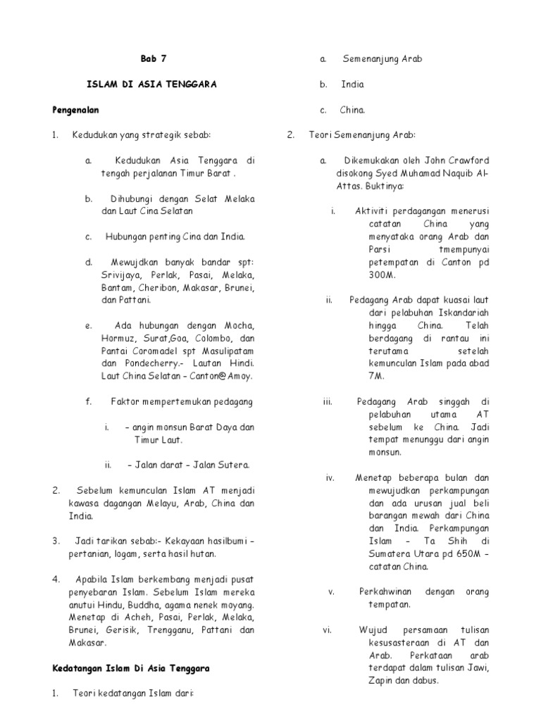 Islam di asia tenggara pengenalan kedudukan yang strategik sebab. Ada hubungan dengan mocha hormuz surat goa colombo. Nota sejarah tingkatan 4 bab 7 dalam format pdf ini dikongsikan untuk anda dengan harapan agar ianya bermanfaat dan dapat membantu proses ulangkaji subjek ini dengan lebih cepat pantas dan mudah dihafal. Perkongsian ini adalah bertujuan untuk memudahkan pelajar dalam mengulangkaji nota nota yang ringkas.