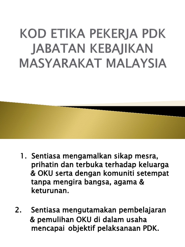 Semua pekerja jkm perlu mengamalkan etika berikut. Menghormati pelanggan jabatan sebagai seorang manusia tanpa mengira kedudukan keturunan dan agama. Menghormati klien jabatan sebagai seorang manusia tanpa mengira kedudukan keturunan dan agama. Tesis yang diserahkan untuk memenuhi keperluan bagi.