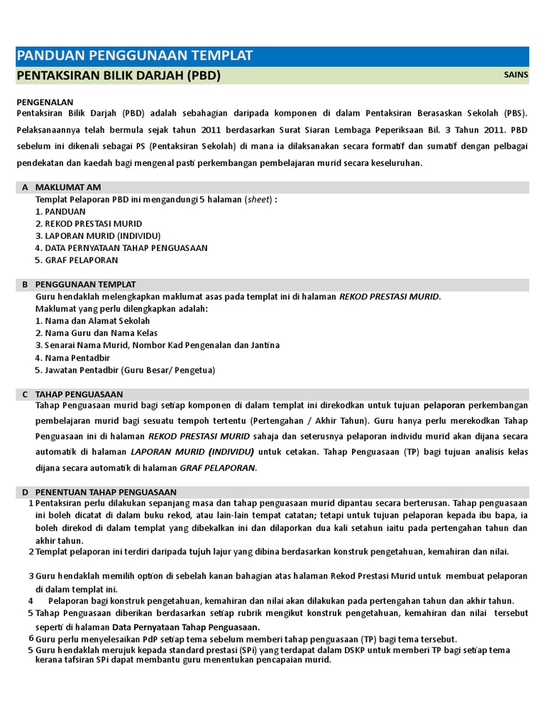 Manakala templat pelaporan pbd yang baharu untuk tahun 3 kssr semakan 2017 dan tingkatan 3 kssm akan dimula digunakan pada tahun 2019. Bahagian pembangunan kurikulum bpk telah membuat penambahbaikan kepada templat pelaporan pentaksiran bilik darjah pbd tahap 1 bagi semua mata pelajaran kssr semakan 2017. Klik sini untuk memuat turun cuti perayaan tahun 2018. Templat pelaporan pbd yang baharu untuk tahun 4 akan digunakan pada tahun 2020 tahun 5.