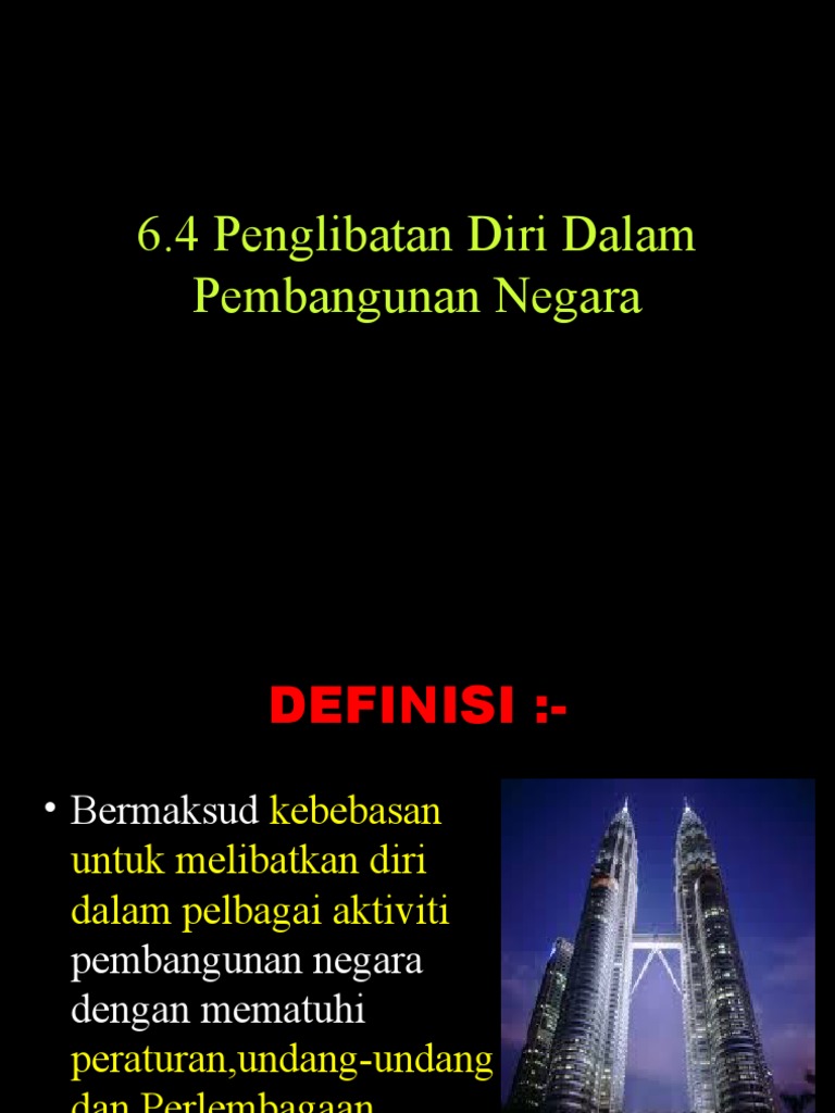 6 4 penglibatan diri dalam pembangunan negara pend. Pendek kata pembangunan negara akan tercapai jika negara kita mempunyai barisan pelapis negara yang kreatif dan inovatif. Artikel ini turut membincangkan mengenai pandangan islam mengenai keterlibatan remaja di dalam. Kebebasan untuk melibatkan diri dalam pelbagai aktiviti pembangunan negara dengan mematuhi peraturan undang undang dan perlembagaan malaysia.