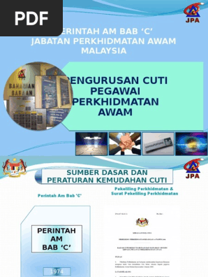 Perintah am bab c pdf. Mengenal pasti kelayakan cuti setiap penjawat awam. Nsebarang tempoh pegawai itu dibenarkan untuk meninggalkan tugasnya peninggalan tugas itu ntidak dikira sebagai putus perkhidmatan sebagai berhenti kerja. Peserta kursus seminar bengkel adalah tidak layak untuk diberi cuti gantian kecuali pegawai yang dilantik menjadi urus setia yang mengendalikan kursus seminar bengkel tersebut. Objektif selepas menghadiri kursus ini semua peserta dapat.