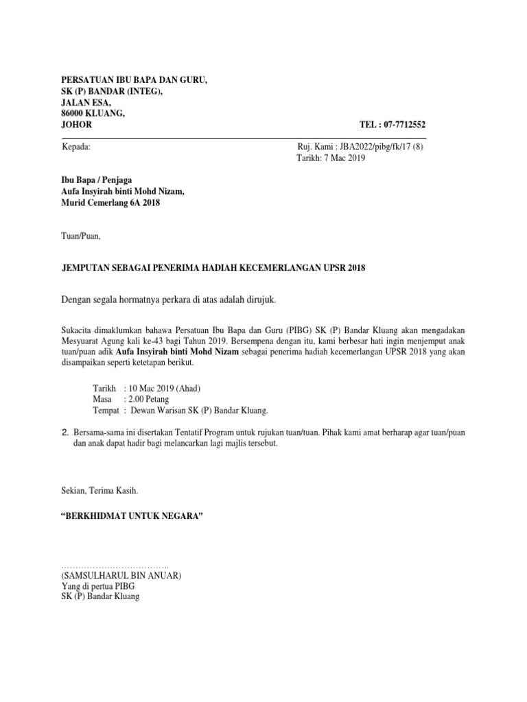 Dengan segala hormatnya perkara di atas adalah dirujuk. Oleh yang demikian besar harapan kami agar pihak tuan sudi hadir ke majlis tersebut seperti butiran di bawah. Untuk makluman tuan puan setiap murid tahu 4 5 6 adalah wajib menyertai aktiviti kokurikulum. Dengan segala hormatnya perkara di atas adalah dirujuk.