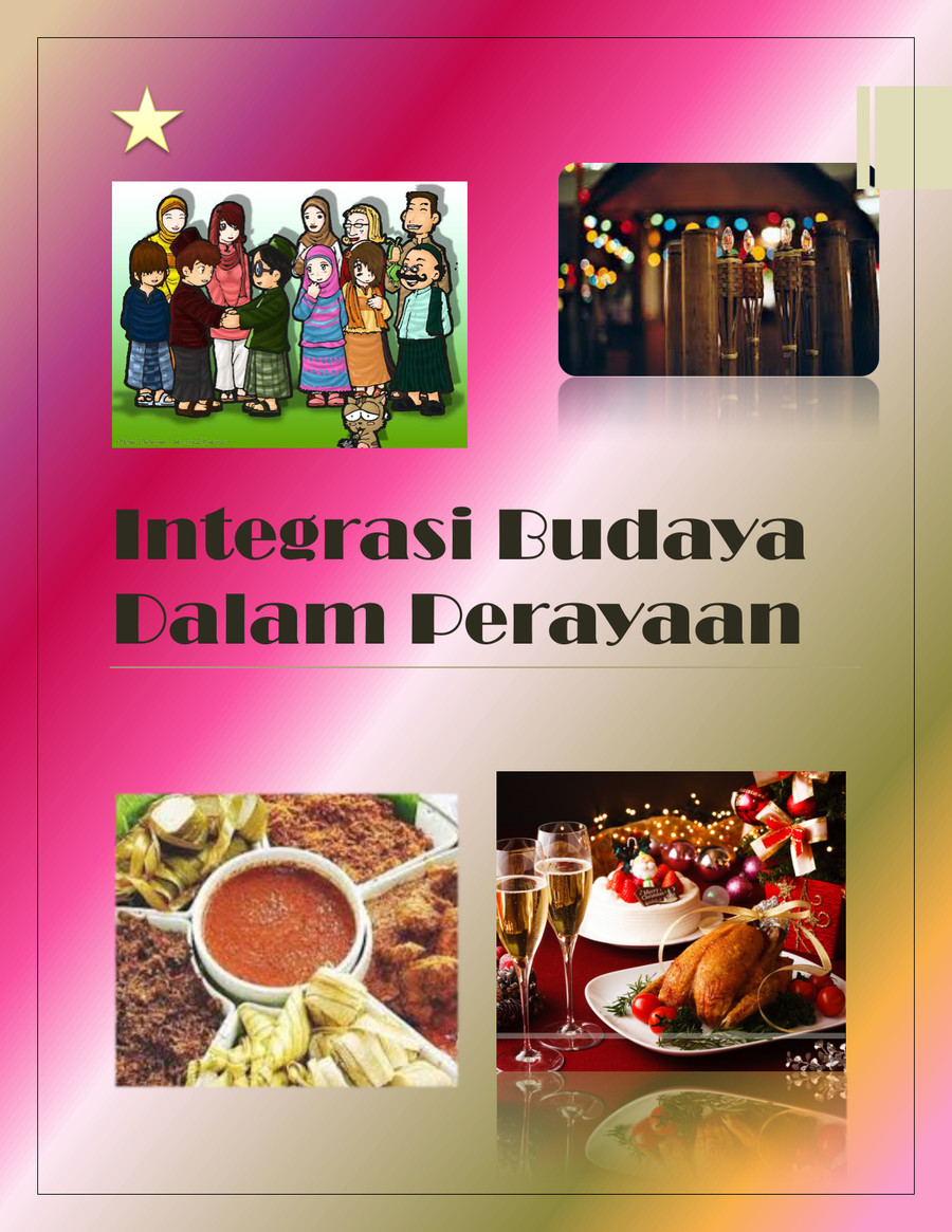 Integrasi budaya dalam perayaan. Menurut abdul aziz 2000 kebudayaan ialah himpunan kekayaan jasmaniah dan rohaniah yang dicipta oleh manusia sebagai cara hidup. Di malaysia terdapat kepelbagaian budaya dan cara hidup yang berbeza. Malaysia ialah sebuah negara yang dihuni oleh pelbagai kaum.