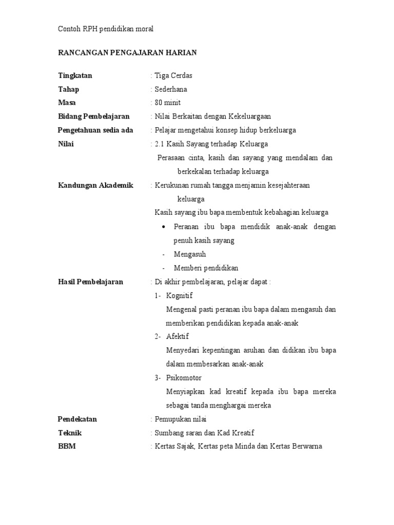 Muat turun download rph lengkap penerapan pendidikan sivik di dalam matapelajaran bahasa melayu bahasa inggeris sejarah pendidikan agama islam dan pendidikan moral 2019 tahun 1 hingga tingkatan 5. Rph harus disediakan sebelum pdpc dilaksanakan di dalam kelas. Berikut merupakan koleksi rph pendidikan moral tahun 1.