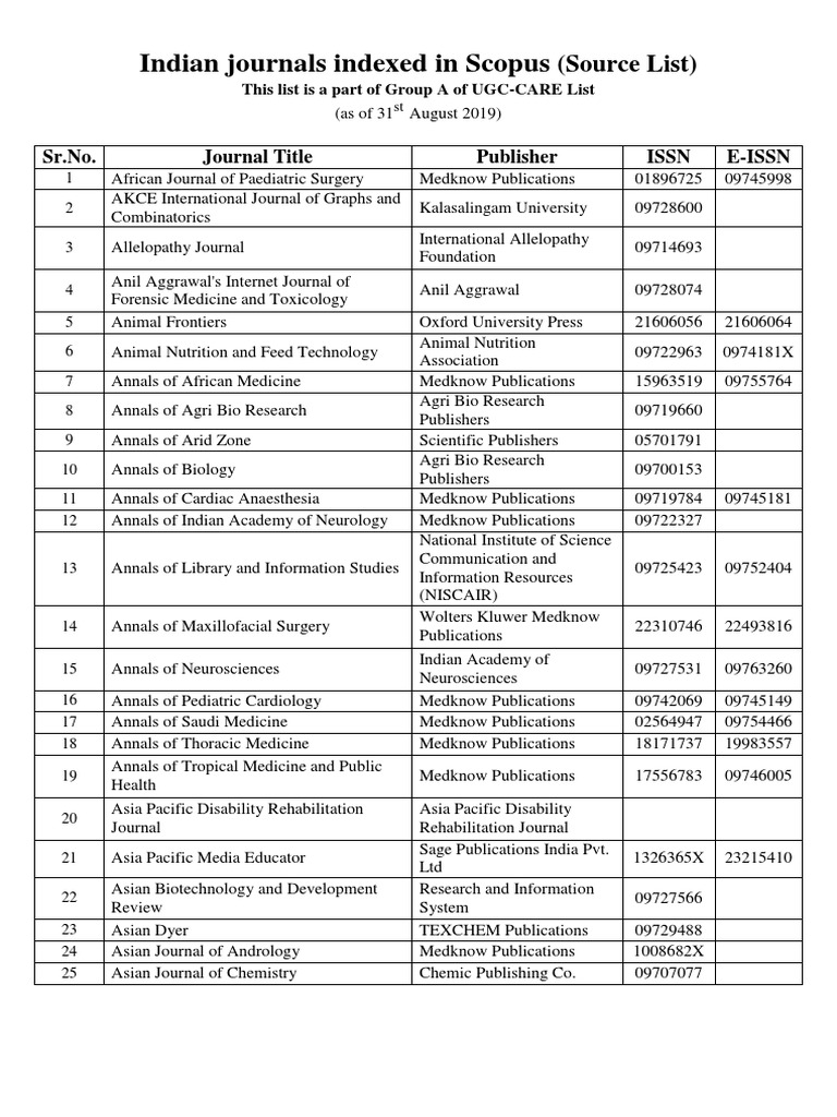 Indian journals indexed in scopus scopus indexed journals. El profesor 4k 13 december 2019. 2019 total cites 3years citable docs. Indian journals indexed in scopus source list this list is a part of group a of ugc care list as of 14th june 2019 sr no.