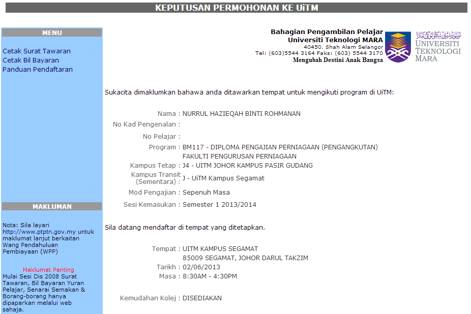 Kampus uitm seksyen 17 intec shah alam selangor 2. Sarjana muda teknologi percetakan kepujian ad232. Menurut sumber daripada portal rasmi bahagian kemasukan pengurusan kemasukan pelajar jabatan pendidikan tinggi kini terdapat 35 buah kampus uitm yang terdiri daripada satu kampus utama 13 kampus negeri berautonomi dan 21 kampus satelit.