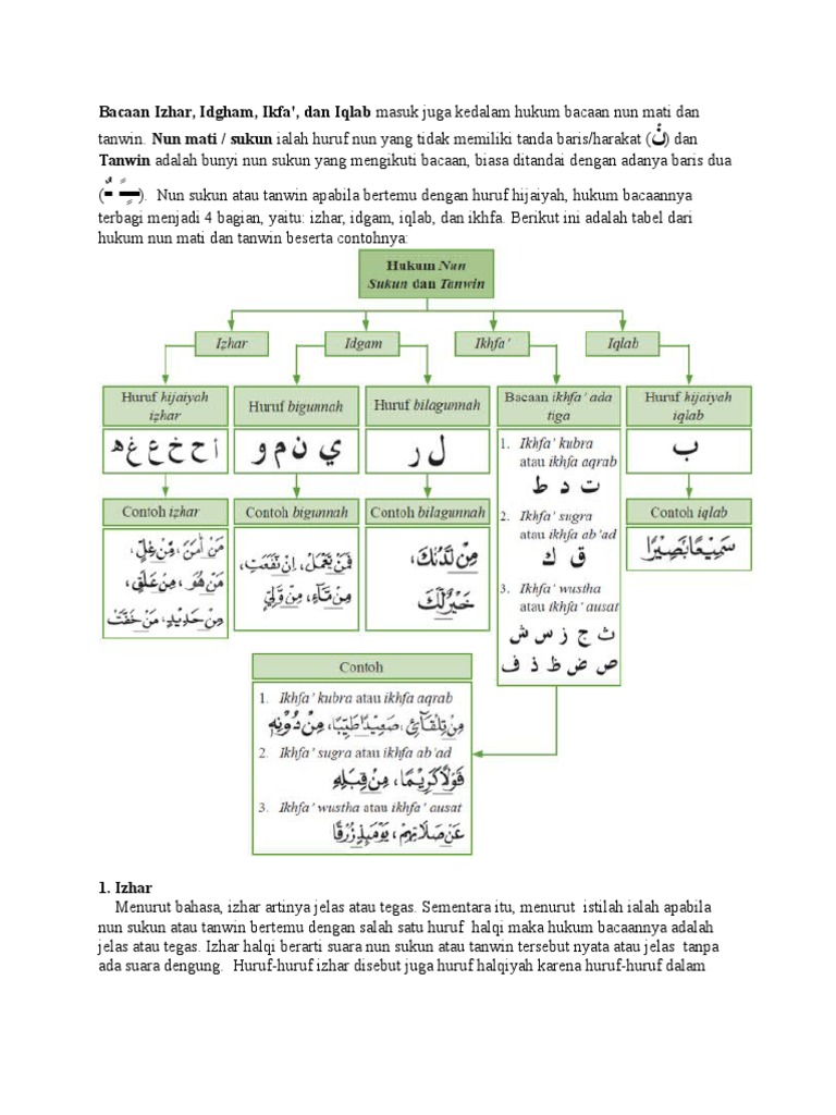 Hukum ini terdiri dari 4 jenis yaitu. Tata cara membaca nun mati dantanwin pada saat bertemu dengan salah satu huruf hiyaiyah. Menurut bahasa idzhar artinya jelas dan terang. Materi dasar dalam mempelajari ilmu tajwid adalah mempelajari bagaimana bacaan hukum nun mati dan tanwin atau nun sukun dan tanwin yang terdiri dari 4 bagian.