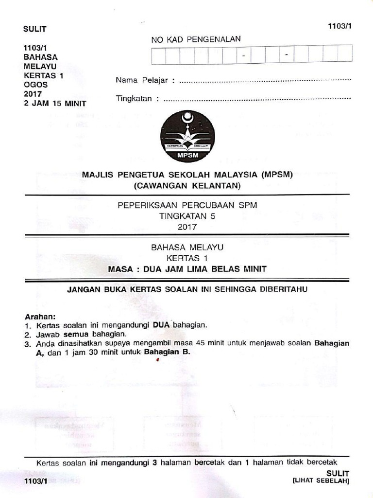 Soalan Percubaan Spm 2018 Bahasa Melayu Kelantan