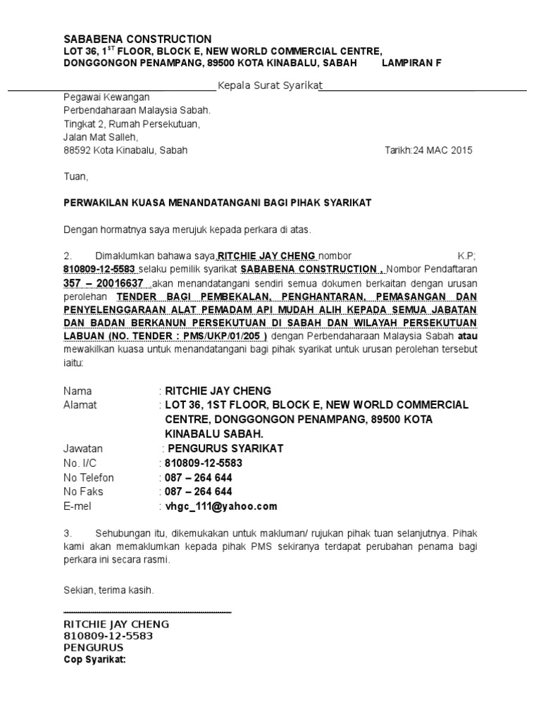 Surat Perwakilan Kuasa In English