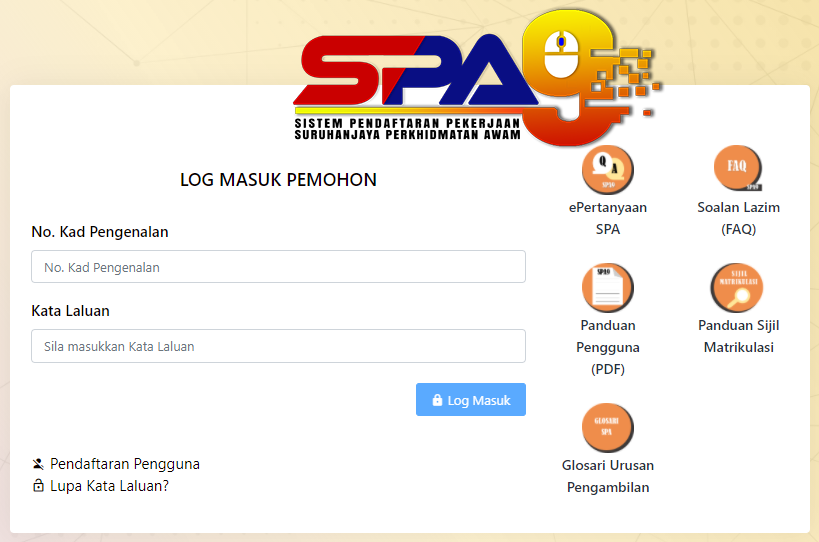 I mulai 1 julai 2016 suruhanjaya perkhidmatan awam malaysia telah menambah baik daftar akaun baharu dan lupa kata laluan melalui integrasi maklumat dengan jabatan pendaftaran negara. A daftar akaun baharu dan lupa kata laluan. Laman facebook rasmi suruhanjaya perkhidmatan awam malaysia spa mudah cepat dan tepat. 03 8317 9333 334 335.