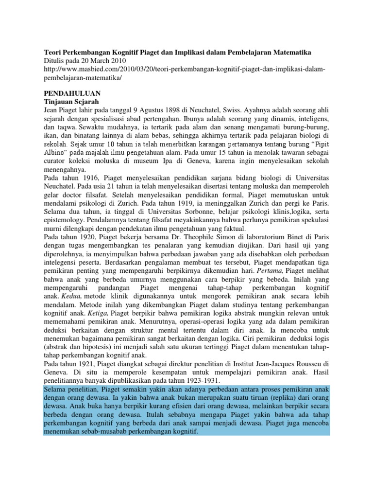 Teori Perkembangan Kognitif Jean Piaget Pdf
